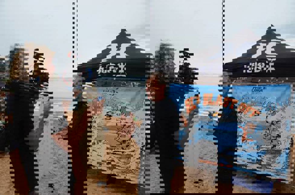 here is a photo of matt interviewing barton lynch for the beecraft sponsored grom comp, BL's blast off that ran last week.