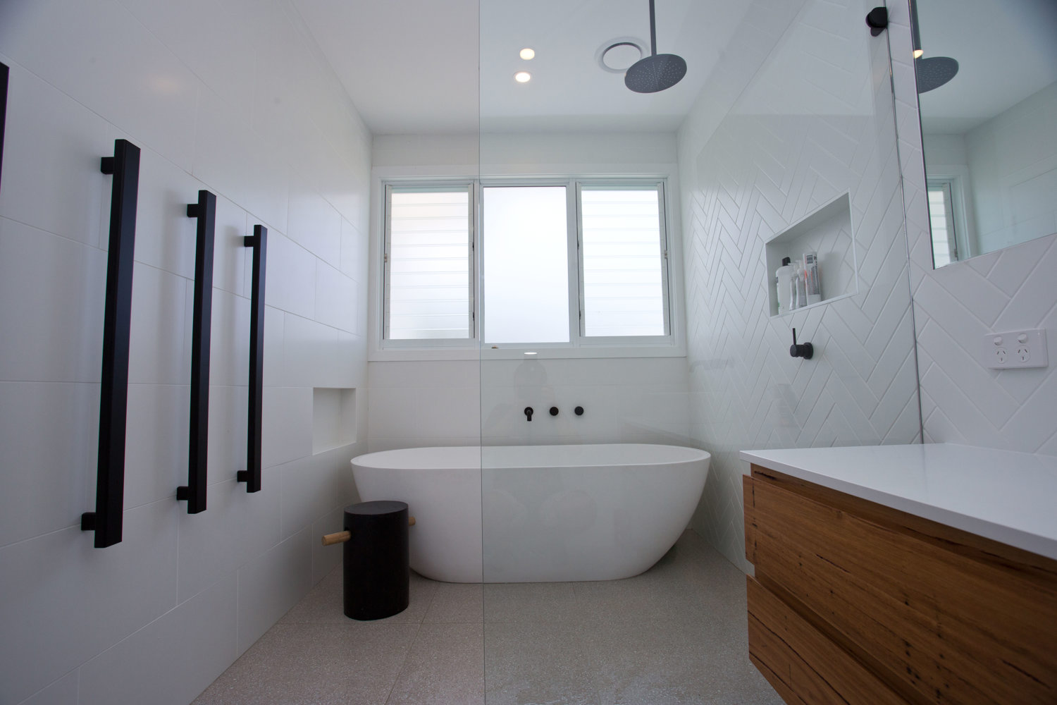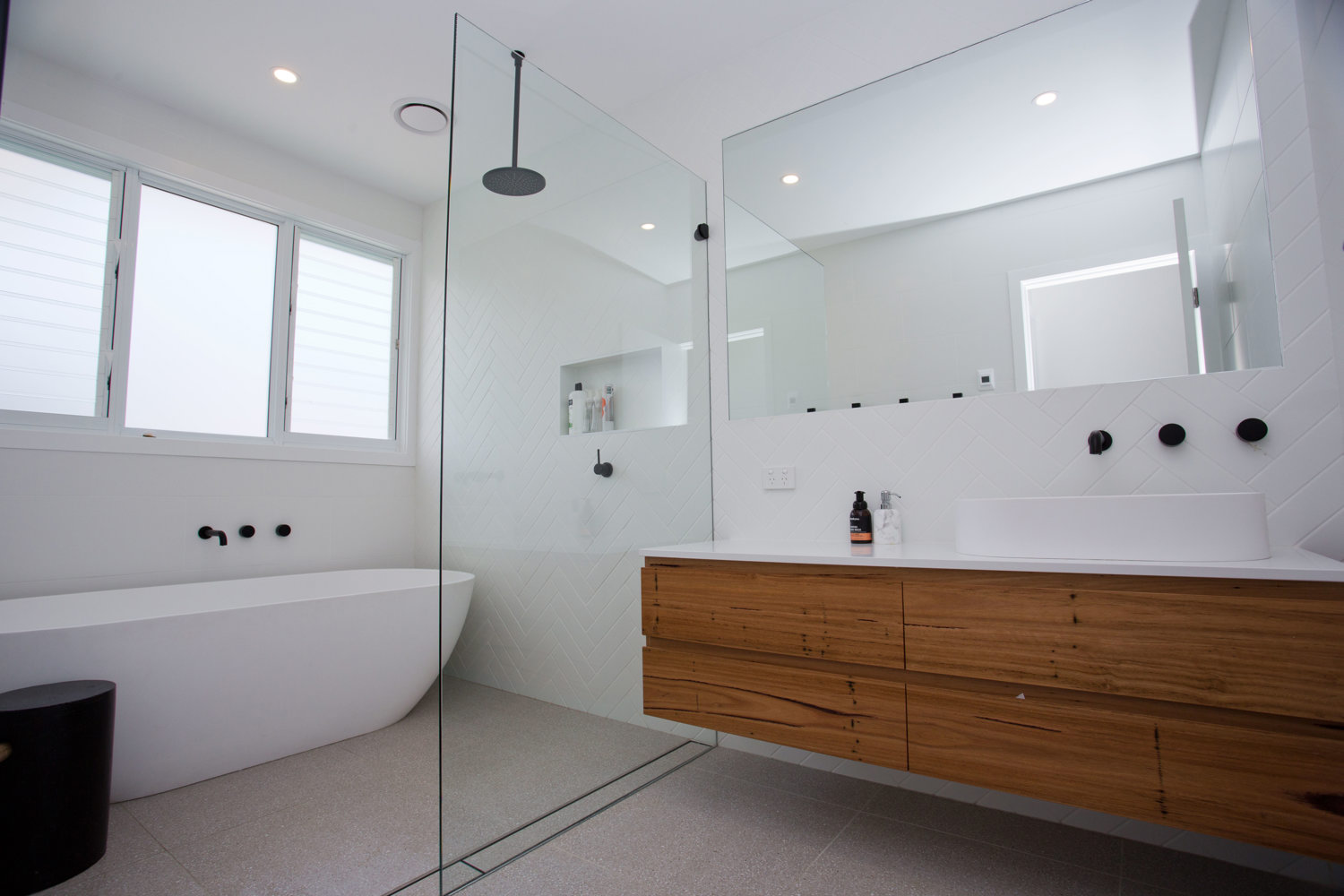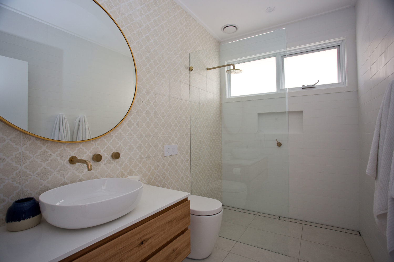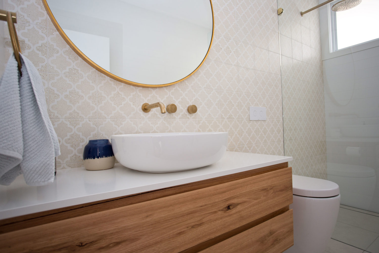 beautiful timber vanities with lovely tiles from Tiles by Kate that make you feel warm and fuzzy from the moment you step in the door. The kitchen,