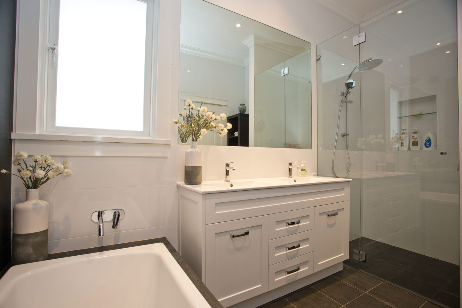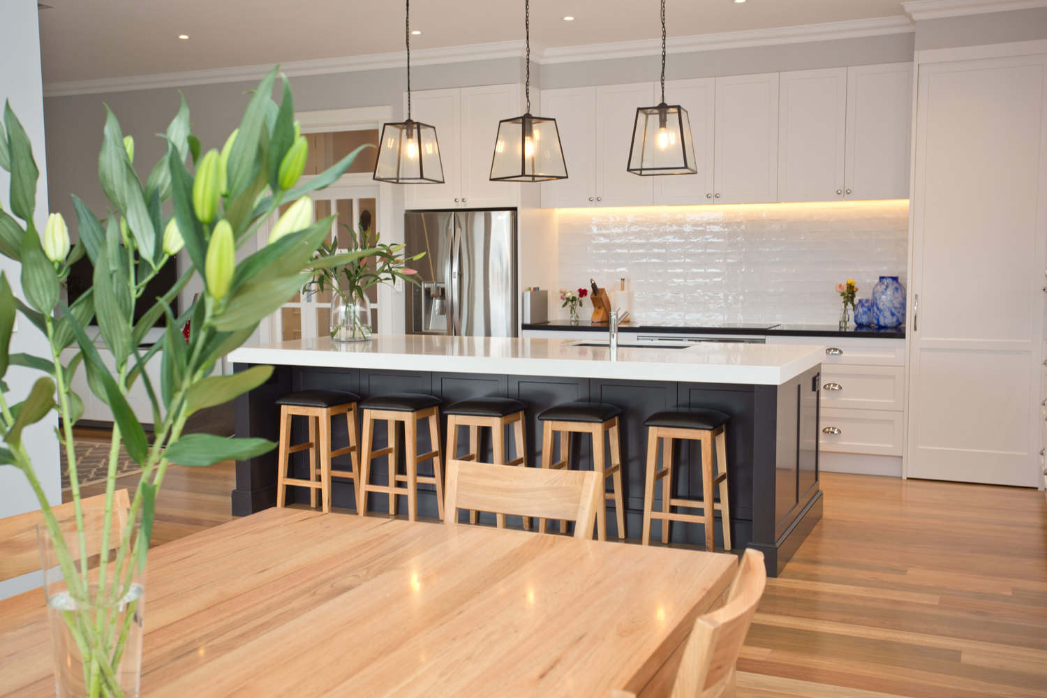 A great Alterations and additions project that included a new kitchen, new bathrooms, living, dining and an outdoor area. The new Kitchen features hanging island lighting, caesarstone bench tops and a tiled splash-back. We love the touches of black under the bench, back bench top and stools. The kitchen drawings have also been included that were designed and completed by our talented interior designer. The colour scheme in the bathrooms have been a hit with the clients, but also with newer clients who are currently working with us and using it as inspiration in the design and construct of their own home. See the beecraft website for more or our work and more ideas for around your home!